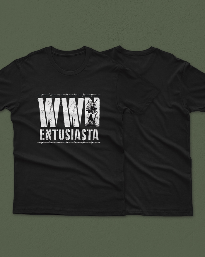 Para aqueles que se apaixonam pelas histórias dos soldados e pela bravura que moldou o nosso mundo, apresentamos uma estampa que celebra a memória e o legado da Segunda Guerra Mundial. Com "WWII" em destaque e "entusiasta" embaixo, esta peça é uma homenagem ao espírito indomável daqueles que lutaram pela liberdade. Vista sua paixão pela história e mantenha viva a memória dos heróis que nos inspiram até hoje.